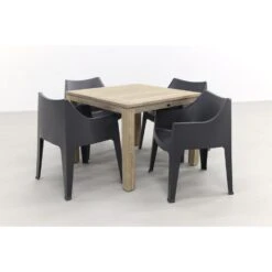 De Alto tuintafel van Taste heeft een teakhouten blad. Teak hout is een harde houtsoort en daarmee perfect geschikt voor het gebruik in tuintafels. Teak hout zal na verloop van tijd gaan verkleuren en haarscheurtjes gaan vertonen. Dit is niet erg want het maakt de tafel juist nog stoerder. Mocht je de voorkeur hebben om de originele kleur te behouden van het teak hout. Dan adviseren wij om de tafel te behandelen met een protector. Deze kun je eenvoudig mee bestellen in de voordeelbundel. Om vlekken te voorkomen kun je de teak tafel ook behandelen met een teak shield. Dit onderhoudsmiddel zorgt er tevens voor dat het teak water- en vuilafstotend is. Let op dat je de teak tuintafel nooit afdekt met een hoes. Wanneer het tafelblad volledig afgesloten wordt kan het niet “ademen” en kunnen er lelijke vlekken ontstaan.