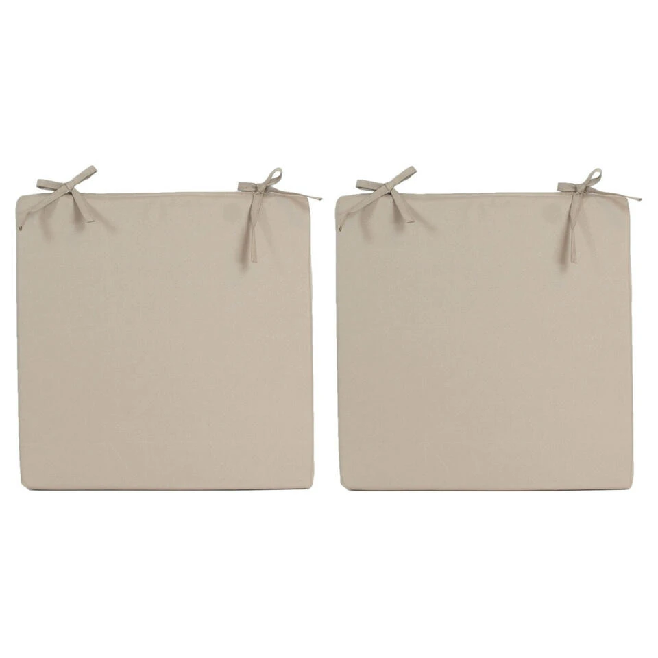 Stoelkussens voor binnen- en buitenstoelen in de kleur taupe/beige 40 x 40 cm. Deze mooie kussens zijn water en UV-bestendig. Materiaal: 100% polyester. Wasbaar: ja, de hoes is wasbaar op 30 graden. Buitenkussens voor bij uw tuinstel/banken. Diverse mooie luxe kleuren voor een topprijs. Tuinkussens voor buitenstoelen.