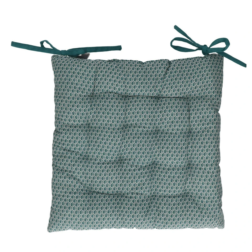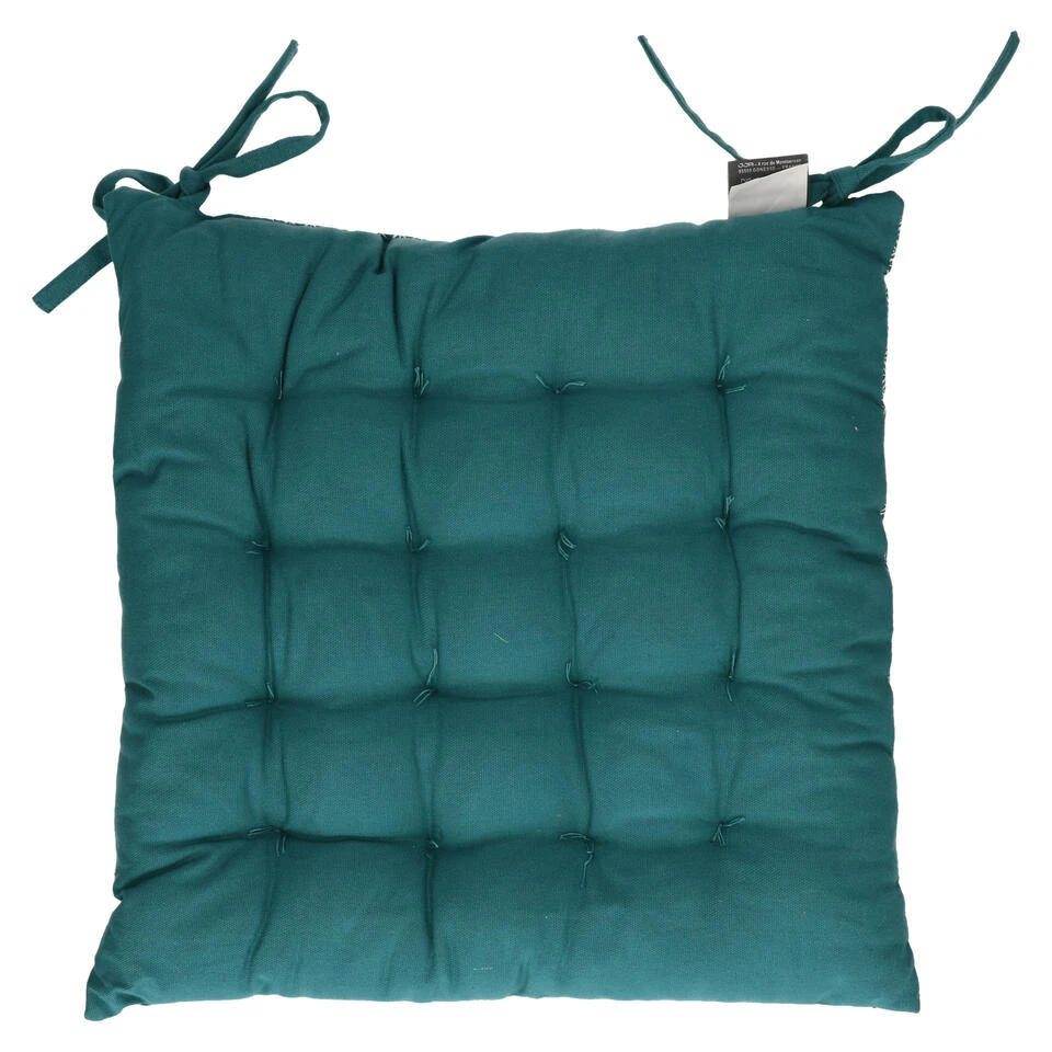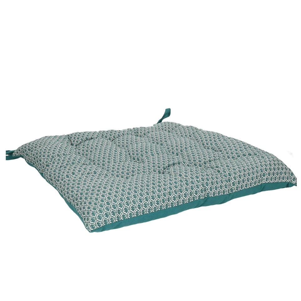 Atmosphera tuinstoelkussen wicker geschikt voor binnen en buiten gebruik. Kleur: petrol met eenvoudig patroon. Afmeting: 38 x 38 x 7 cm Materiaal: 100% katoen. Niet wasbaar, afnemen met vochtige doek. Gewicht: 590 gram. Buiten/binnen kussens voor de stoelen van uw tuinstel of keukentafel. Diverse mooie luxe kleuren voor een topprijs. Met twee vastzet koordjes.