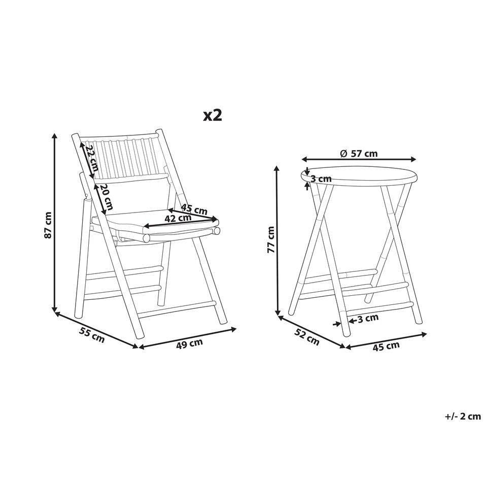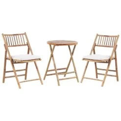 Opvouwbare bistro set. Met deze prachtige balkon set breng je een natuurlijk gevoel naar je balkon of terras. Zowel de tafel als de stoelen zijn gemaakt van bamboe, een natuurlijk en duurzaam materiaal. De set heeft kussens met dikke vulling voor een hoog zitcomfort. Daarnaast is de set ook nog eens in te klappen zodat je de set gemakkelijk kan verplaatsen. Geniet van je een heerlijke kop koffie of thee in deze praktische boho set.