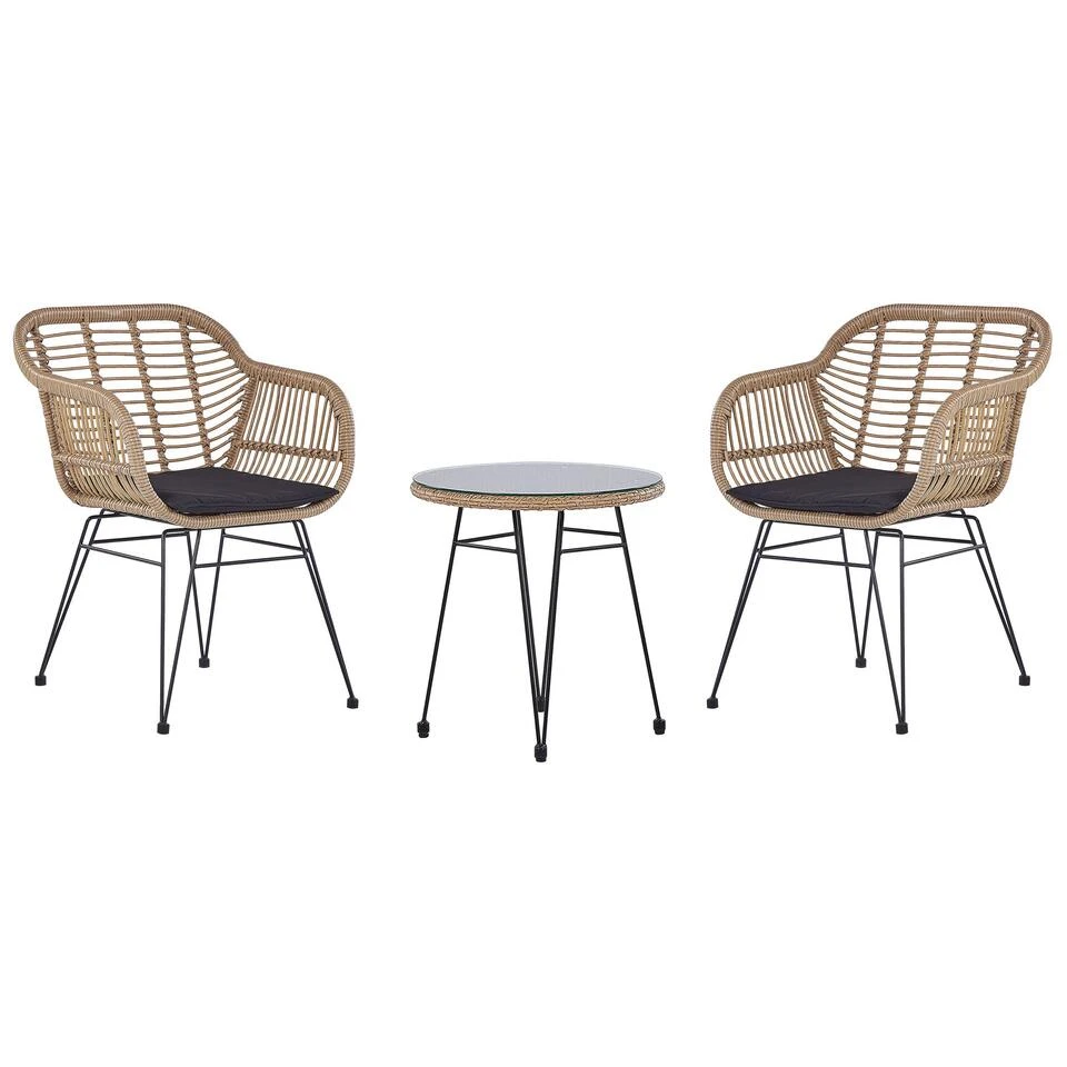 3-delige balkonset met een heerlijk luchtig karakter. Deze zonnige tuinset met slanke vormen, een delicaat ontwerp en een luchtige look is precies wat je zoekt voor een afgelegen plek in de tuin of op het balkon. De 3-delige set bestaat uit twee comfortabele tuinstoelen met prachtig gebogen armleuningen en een bijzettafeltje met een ronde glazen bovenkant. Comfortabel gewatteerde zitkussens en het elegante zwarte metalen frame maken het zomerse ontwerp compleet.
