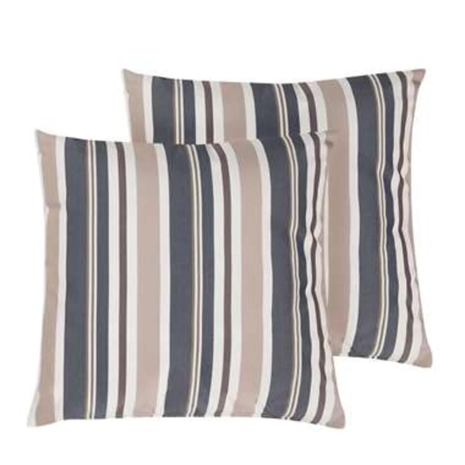 Tuinkussen 40×40 cm bonte strepen. Extra steun voor je rug, decoratief op de bank of als extra kussen voor je nek en hoofd bij het zonnen – een mooi kussen in een set van 2 mag niet ontbreken! Met deze vierkante en aangenaam zachte kussens breng je in een handomdraai nog meer comfort in je zithoek in de tuin of op het balkon. De hoes met zijn kleurrijke patroon zorgt voor een goed humeur, is gemaakt van duurzaam en onderhoudsvriendelijk polyester en is water- en vuilafstotend, UV-bestendig en van zeer hoge kwaliteit. De hoes is afneembaar met een verborgen ritssluiting en is geschikt voor handwas.