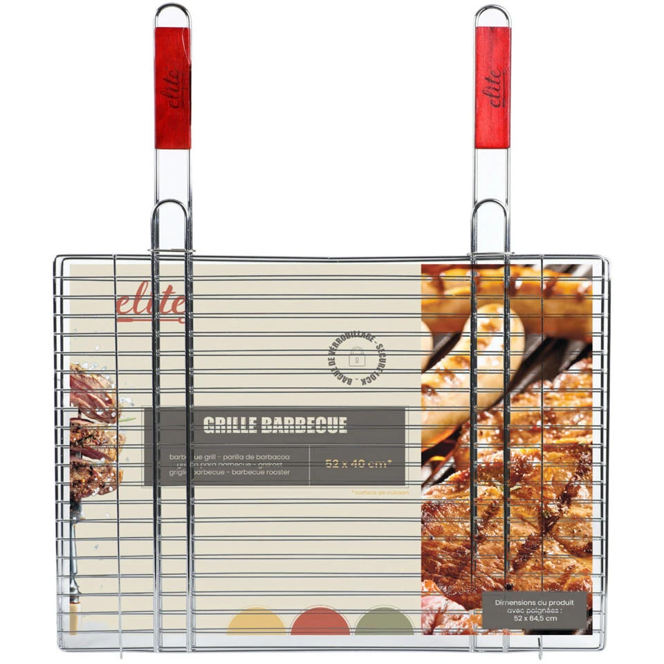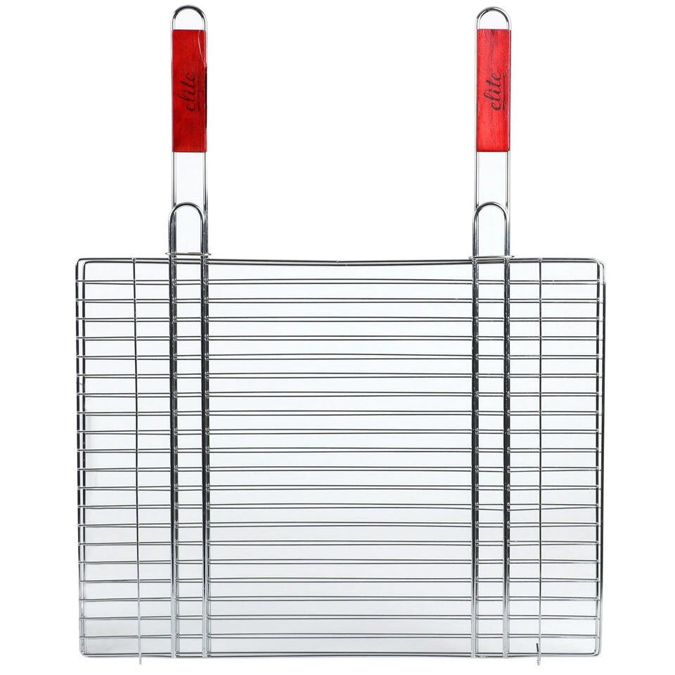 Elite BBQ/barbecue rooster of klem grill gemaakt van chrome metaal met afmetingen 52 x 64 x 1 cm. Extra groot formaat. Handig bbq gereedschap om vlees, groente of vis te grillen en gemakkelijk om te draaien zonder uw handen te verbranden. Geniet van uw maaltijd.