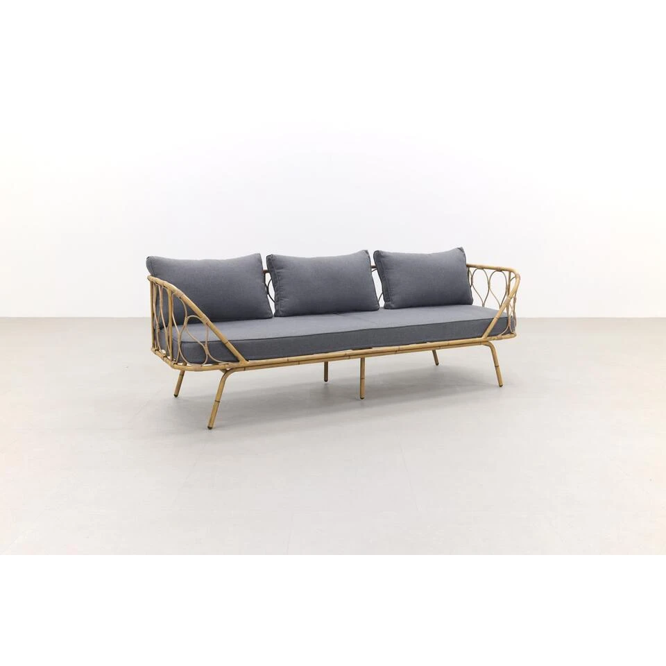 De Cleopatra bamboe bank is vervaardigd uit hoogwaardige materialen. Hierdoor heeft de loungebank een lange levensduur en een hoog zitcomfort. Het frame is gemaakt van aluminium en afgewerkt met een beschermende coating in bamboe look. Voordeel ten opzichte van echt bamboe is dat dit geen onderhoud nodig heeft. Naast kwaliteit is comfort natuurlijk ook een belangrijke eigenschap. Bij de Cleopatra 3-zits loungebank hoef je daar niet over in te zitten. De bank is uitgerust met dikke kussens die je het optimale lounge-gevoel geven. Handig om te weten is dat de hoezen van de kussens uitgewassen kunnen worden. Bij slecht weer adviseren wij om de kussens op een droge en geventileerde plek op te bergen. De kussens zijn namelijk niet waterbestendig.