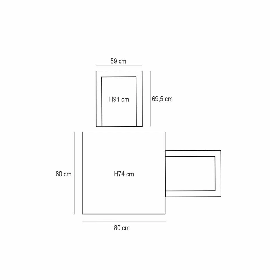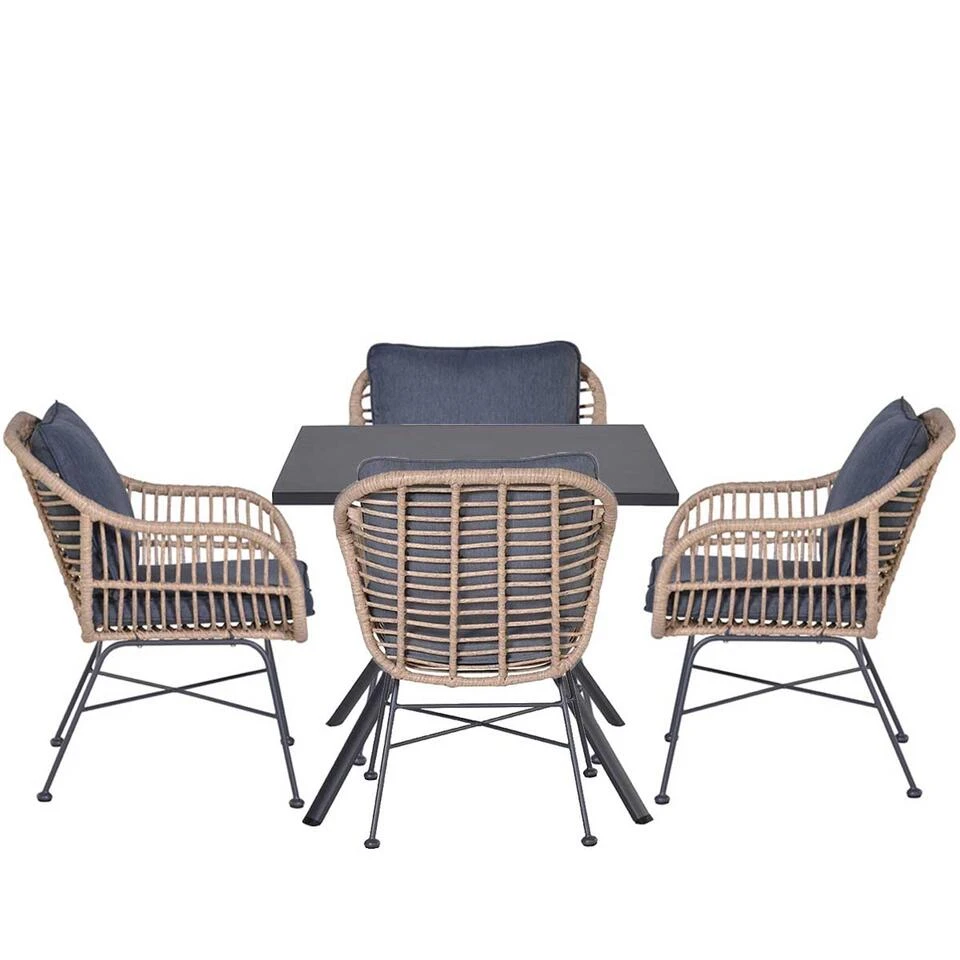 De afmeting dining fauteuil is B 59 x D 69,5 x H 82,5 cm met wicker natural rotan met aluminium frame en polyester donker grijs kussen. De afmeting tuintafel is L 80 x B 80 x H 72 cm met aluminium frame met een matte poedercoating in de kleur carbon black. Een uitgebreide collectie tuinsets vind je binnen de categorie tuinmeubelen. Tuinmeubelen van verschillende mooie merken.