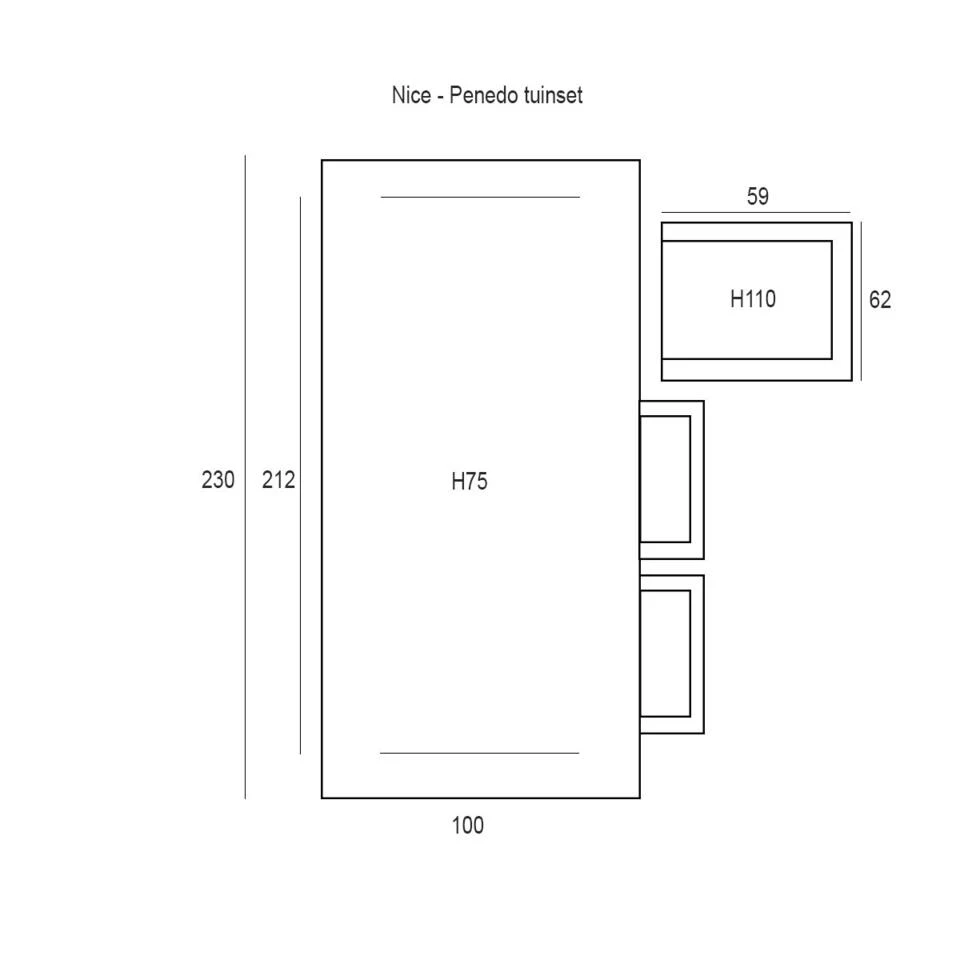 De Nice verstelbare tuinstoel is vervaardigd uit een onderhoudsvrij aluminium frame. Daaromheen is, met de hand, weerbestendig 2-half wicker vlechtwerkdraad gevlochten. Het wicker is gemaakt van een stevige kunststof waardoor de set zeer duurzaam is. De Penedo tuintafel is vervaardigd uit een aluminium frame voorzien van een stevige poeder coating laag. Deze laag zorgt er voor dat het frame van de tafel kras- en stootvast is. Het frame is fraai vormgegeven door de ronde tafelpoten die schuin onder de tafel zijn geplaatst, hierdoor krijgt de tafel een speciaal en uniek uiterlijk. Het tafelblad is gemaakt van polywood ‘houtlook’ latten, dit is een onderhoudsvriendelijke kunststof met een mooie houtuitstraling. De tafel wordt geleverd in een stevige verpakking. De tafelpoten kunnen eenvoudig worden gemonteerd. Iedere poot zit vast met twee schroeven. Alle benodigdheden voor de montage worden meegeleverd bij de tafel.
