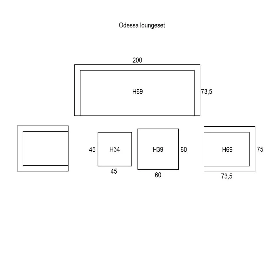 Afmeting loungestoel: 75 x 73,5 x H 69 cm