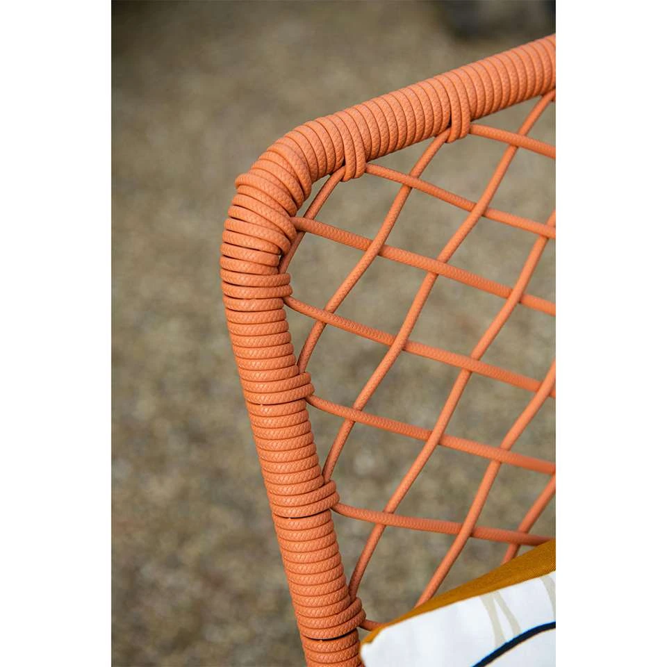 Zoek jij een kleine tuinset voor bij jouw in de tuin? Bekijk dan deze leuke Ross – Mina tuinset eens van het kwaliteitsmerk Garden Impressions. Deze set bestaat uit vier tuinstoelen en één tuintafel. Zowel de tuinstoelen als de tuintafel zijn gemaakt van aluminium. Bij de tuinstoel zit er om het aluminium frame touw gevlochten. Dit touw kun je vergelijken met touw dat in de scheepsvaart gebruikt wordt. Het touw is voorzien van een rubberen kern binnenin met daarin meerdere polyester draden voor de stevigheid. Om de rubberen kern zit solution dyed polyester rope. Dit betekent dat het touw door en door gekleurd is en verkleurt veel minder snel. De tuintafel wordt geleverd in een stevige verpakking. De tafelpoten kunnen eenvoudig worden gemonteerd met het bijgeleverde bevestigingsmateriaal. Alle benodigdheden voor de montage worden meegeleverd bij de tuintafel. Daarna kan het echte genieten beginnen. Afmeting tuinstoel: 63 x 55 x 85 cm en de tuintafel 90 x 90 x 71 cm.