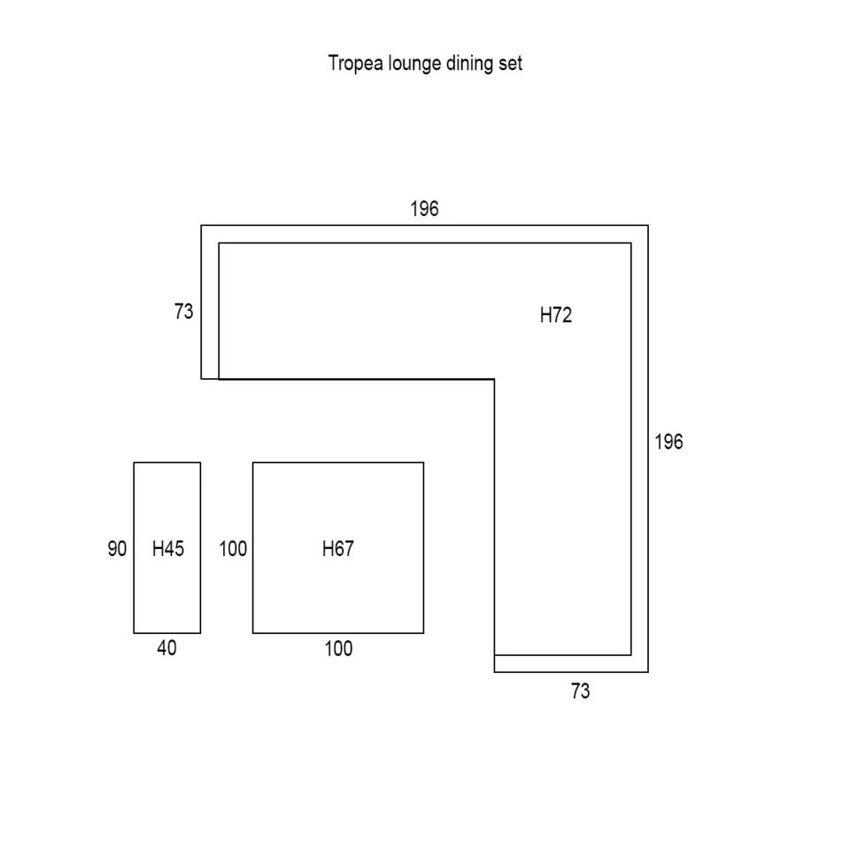 - Afmetingen isL 196 x B 196 x H 72 cm.