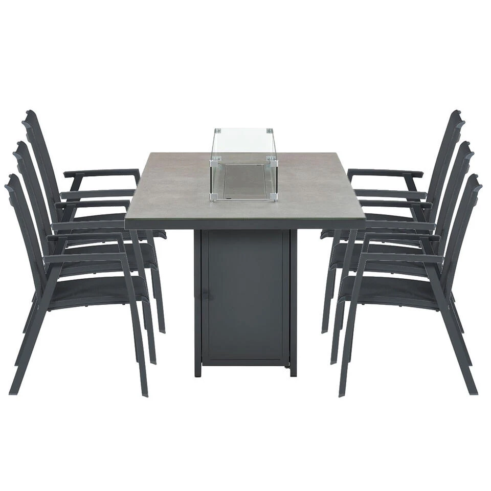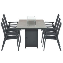 De Cozy Living Elnes tuintafel met vuurhaard is vervaardigd uit een onderhoudsvrije RVS brander en slate ceramic glass blad. De RVS-brander wordt mooi weggewerkt door de meegeleverde witte stenen. Heb je kinderen en vind je de vlammen toch wat gevaarlijk? Dit is gemakkelijk op te lossen met een glazen langwerpige ombouw. Deze wordt standaard meegeleverd. Bij deze gas vuurtafel wordt standaard een afdekhoes meegeleverd voor het vuur gedeelte van de tafel.