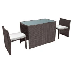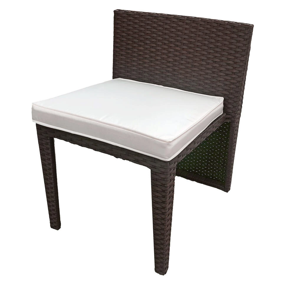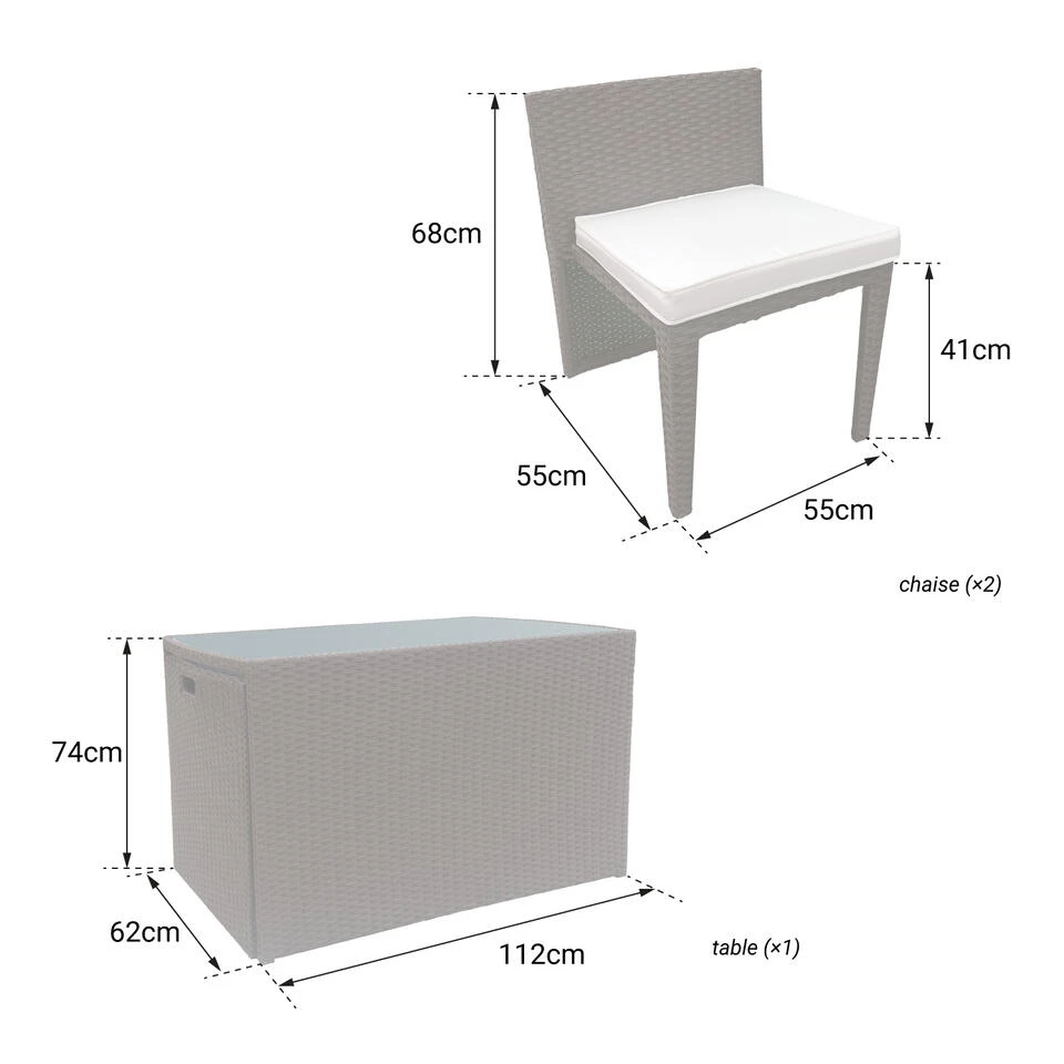 Of u nu een groot terras heeft of een kleine ruimte, deze tuinset uit het SANTORIN assortiment is voor u. U kunt ruimte besparen waar u hem ook installeert, omdat de stoelen onder de rechthoekige tafel kunnen worden geschoven en zo een blok vormen. Een ingebouwde tuinset die niet beknibbelt op zijn uiterlijk. Met zijn ontwerp van geweven hars geeft hij een natuurlijke, chique toets aan elke tuin of terras, ongeacht de stijl. De 2 fauteuils hebben gewatteerde kussens voor comfort en zijn afneembaar voor gemakkelijk wassen in de machine. Deze 2 zits tuinmeubelen zijn water- en UV-bestendig en behouden hun oorspronkelijke look.