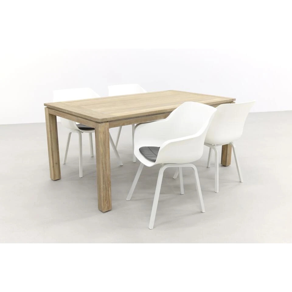 De Hartman Sophie Element/Rome tuinset heeft een robuuste uitstraling en is dan ook een echte eyecatcher in je tuin. Aan deze tuinset geniet je van een gezellige barbecue met vrienden of familie. De ruime tuintafel met zijn afmetingen van 170 x 100 cm. biedt plaats aan 4 personen. Je kan eventueel nog 2 extra stoelen aanschuiven aan de kopse kanten van de houten tuintafel, zodat je met 6 personen kunt dineren.