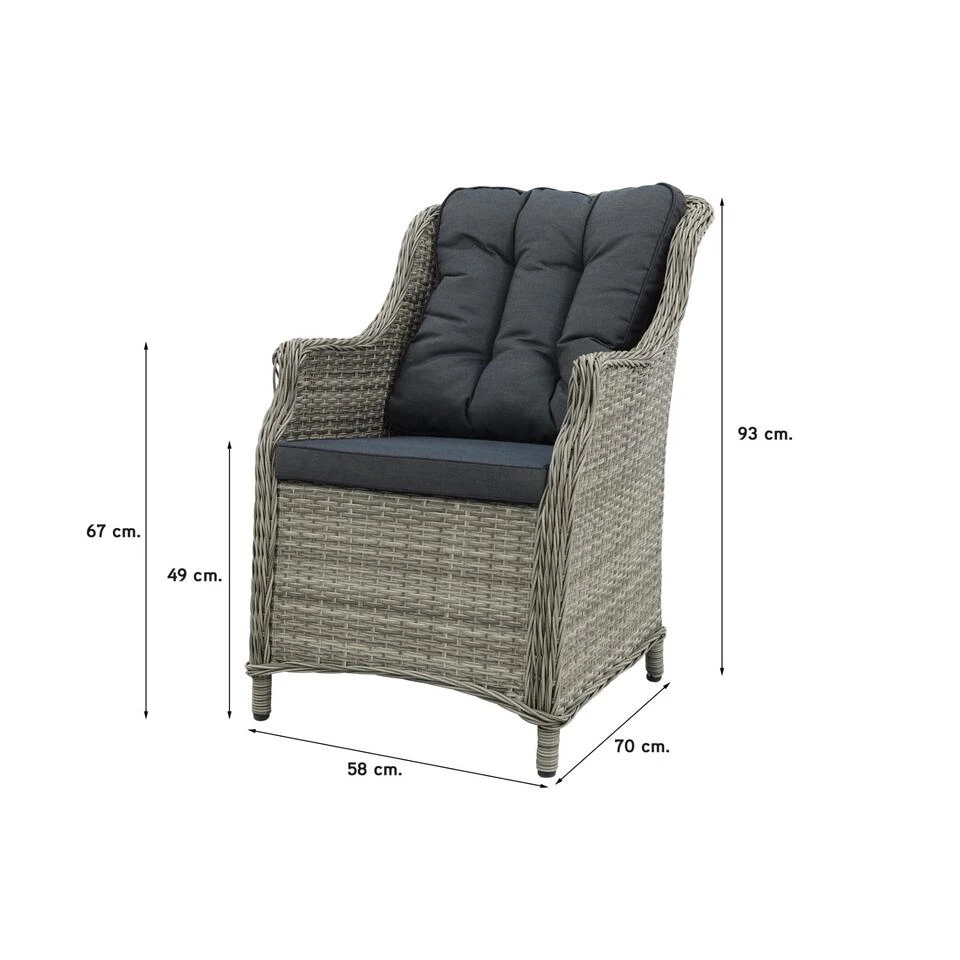 Het frame van de King tuinstoel is gemaakt van aluminium. Aluminium is een materiaal met geschikte eigenschappen om te gebruiken voor tuinmeubelen. Zo is het licht van gewicht, onderhoudsvrij en kan het niet gaan roesten. Om het aluminium frame heen is het wicker gevlochten. Het vlechtwerk is gemaakt stevig kunststof en heeft een lange levensduur. Bij deze stoel krijg je standaard de zit- en rugkussens meegeleverd. Wanneer de stoelen niet worden gebruikt is het verstandig de kussens op te bergen in een droge en geventileerde plek. Een opbergbox kan hiervoor een geschikte keuze zijn! Voor deze stoel hebben wij echt het beste uit de kast getrokken, de stoel heet niet voor niets de King!Â