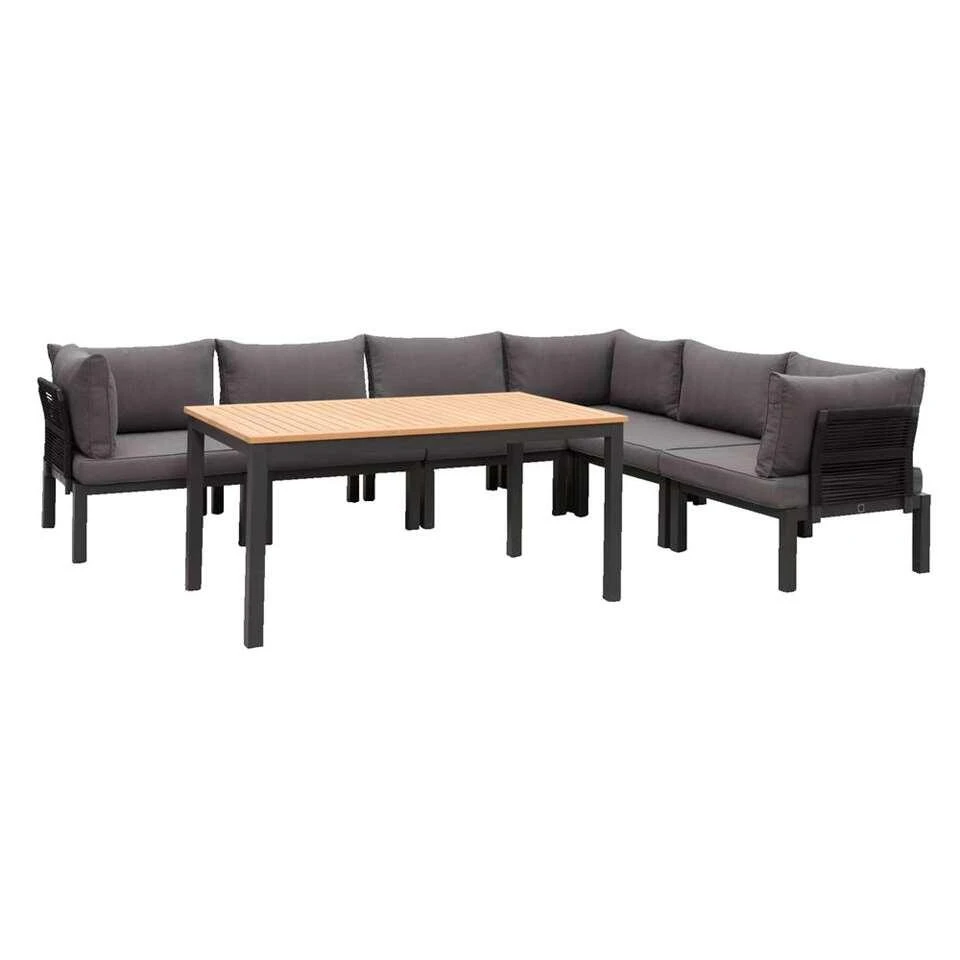 Modulaire Lounge set Ardeche biedt ruimte om met 6 personen heerlijk te relaxen. De gehele serie Ardeche is gemaakt van hoogwaardig aluminium en eucalyptushout FSC®. Deze houtsoort valt onder de noemer hardhout, die kenmerkend is voor een lange levensduur. Zo kan jij dus optimaal genieten van zowel de kwaliteit als zijn prachtige uitstraling.Â
