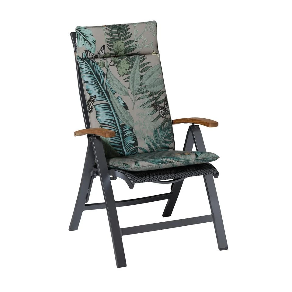 Een tuinkussen nodig voor uw houten, stalen of kunststof tuinstoel? Geef uw tuinstoel dan meer comfort en uitstraling met het nieuwe type hoge rug van Madison. Ondanks dat het kussen dunner is geworden heeft het nog steeds de kwaliteit en kracht van een dik, luxe kussen. Het model is perfect voor uw stoel met verstelbare rugleuning. Voorzien van een verstelbare band aan de achterkant en touwtjes, blijft het kussen hoog goed in de stoel zitten.