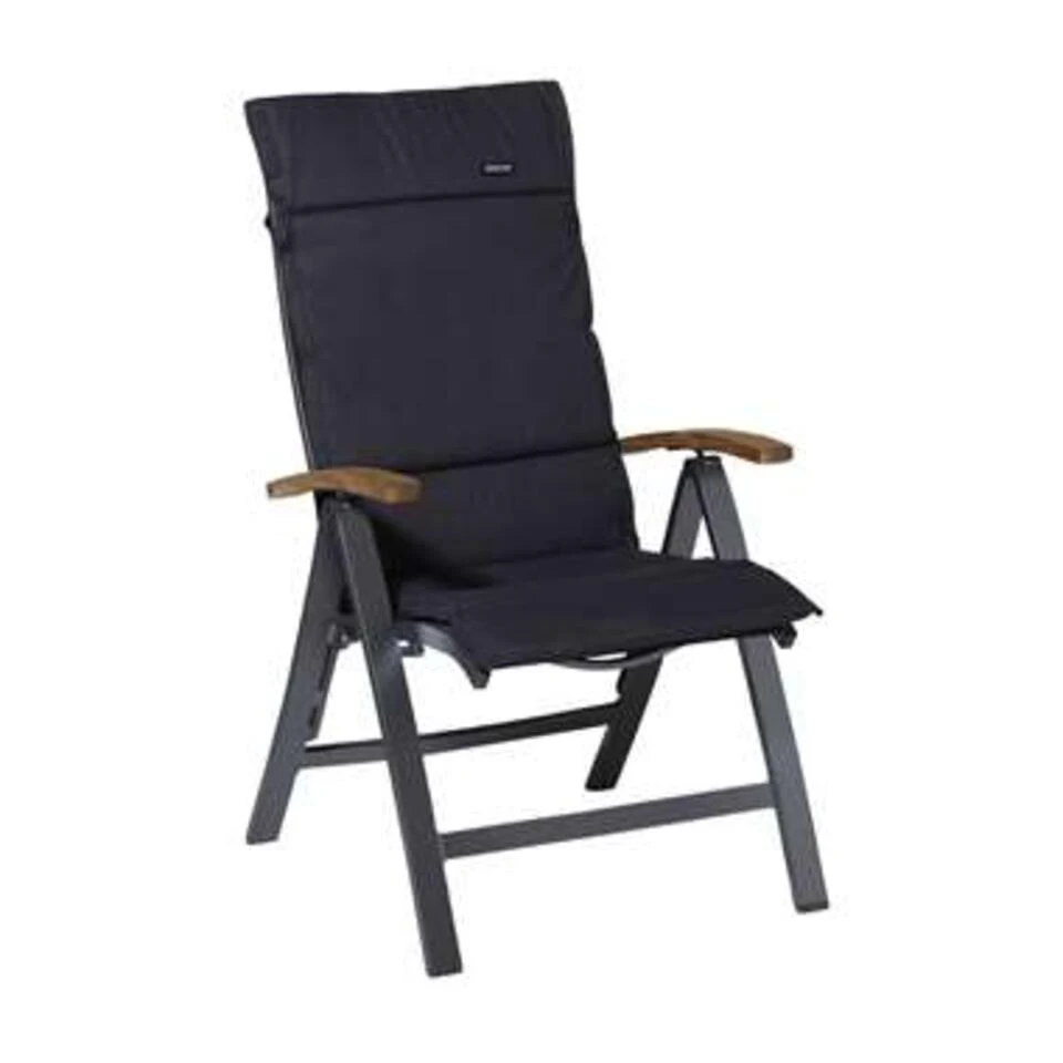 - Het is een zwart tuinstoelkussen.