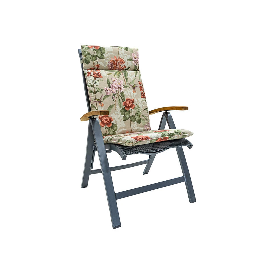 Een tuinkussen nodig voor uw houten, stalen of kunststof tuinstoel? Geef uw tuinstoel dan meer comfort en uitstraling met het nieuwe type hoge rug van Madison. Ondanks dat het kussen dunner is geworden heeft het nog steeds de kwaliteit en kracht van een dik, luxe kussen. Het model is perfect voor uw stoel met verstelbare rugleuning. Voorzien van een verstelbare band aan de achterkant en touwtjes, blijft het kussen hoog goed in de stoel zitten.