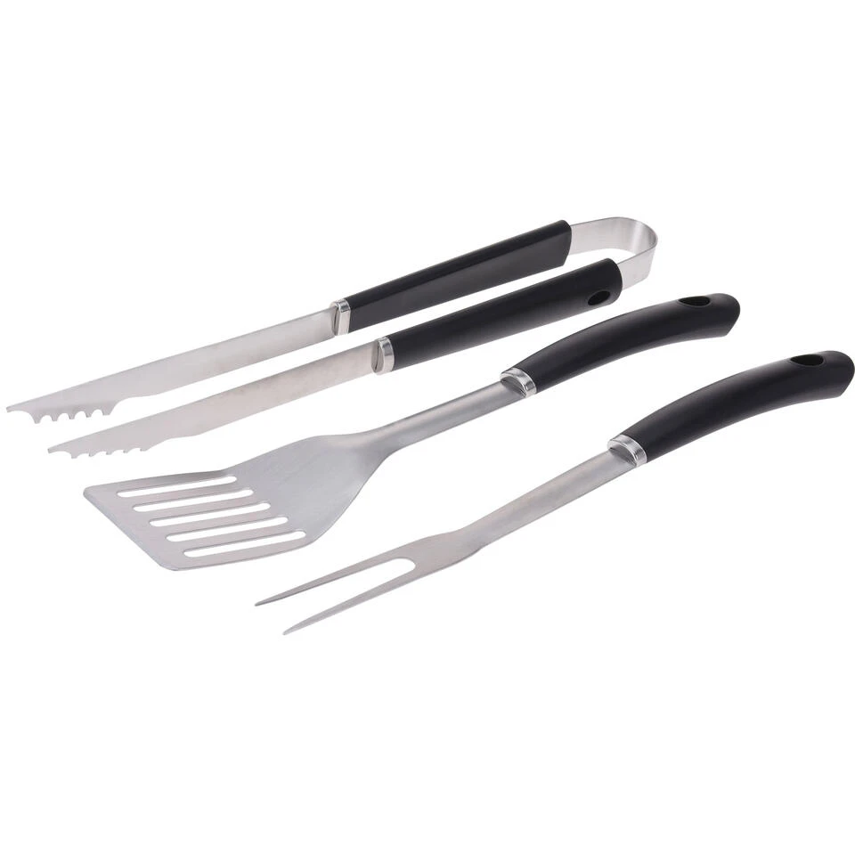 BBQ/barbecue gereedschap set 3-delig RVS. Roestvast stalen gereedschap set voor op de barbecue bestaande uit een tang, vork en spatel.