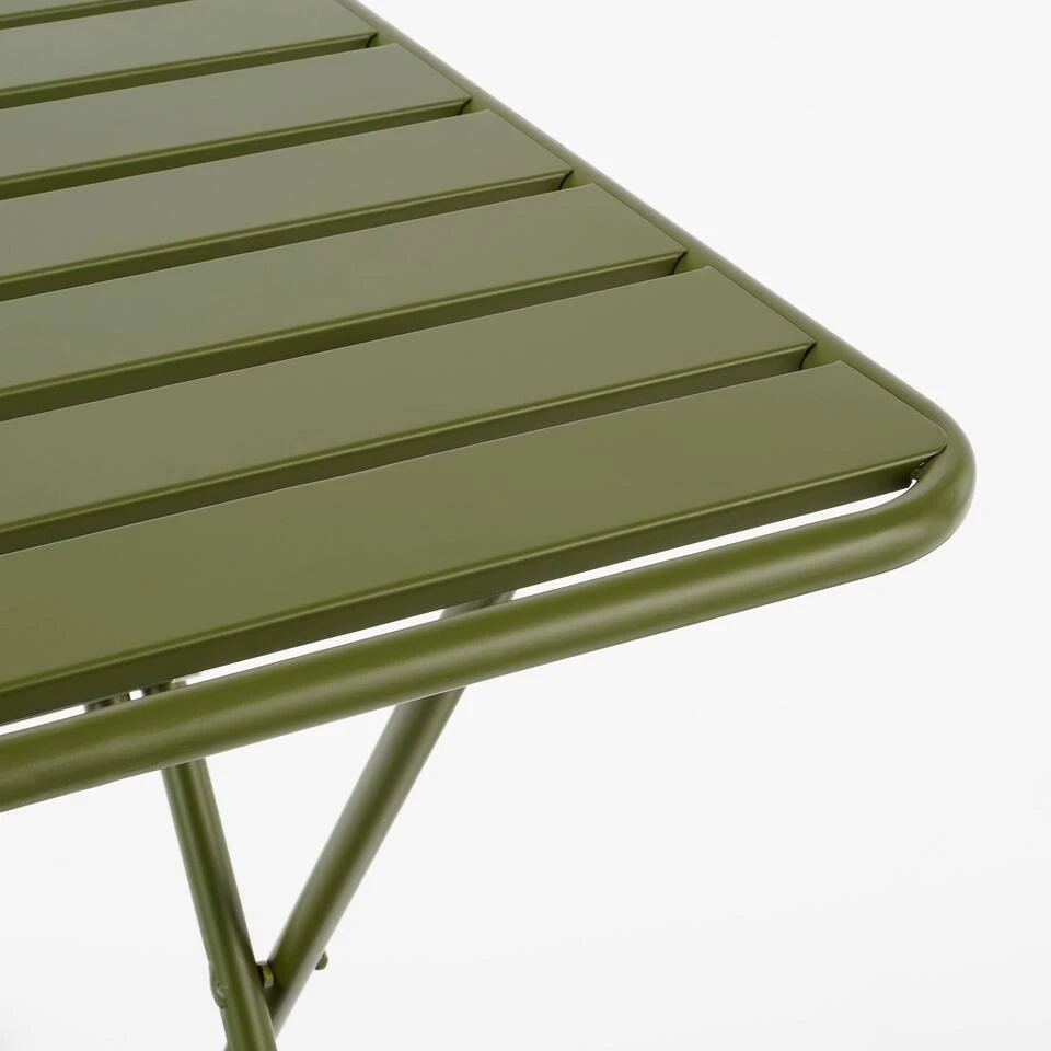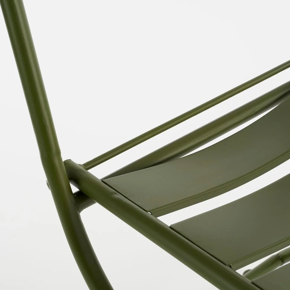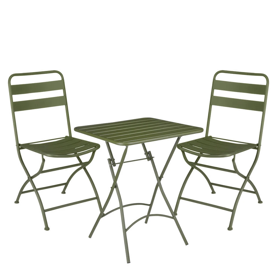 Met de Evita bistro set uit de collectie van Mica Decorations creëer je in een mum van tijd een gezellig zitje in de tuin met een moderne uitstraling. De set is gemaakt van metaal en heeft een donkergroene kleur. Door de strakke afwerking is hij met van alles te combineren en weet hij op elk terras wel een plekje te vinden. De bistrostoelen en bistrotafel zijn inklapbaar, waardoor je ze met visite snel tevoorschijn kan halen. Of gebruik hem heel de zomer zelf en berg ze daarna gemakkelijk op in de schuur. De Evita bistro set bestaat uit twee bistrostoelen met een afmeting van L44 x B56,5 x H87 cm en een bistrotafel met een afmeting van L60 x B60 x H74,5 cm.