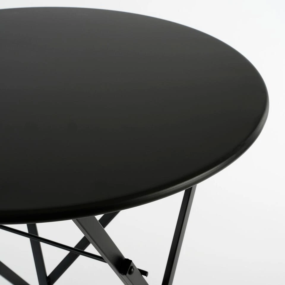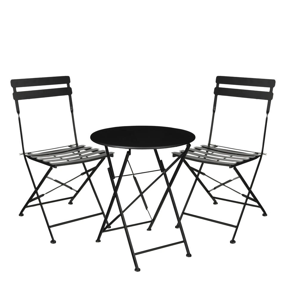 Met de Laurence bistroset van Mica Decorations creëer je in een mum van tijd een gezellig en comfortabel zitje. De set is gemaakt van metaal en heeft een zwarte kleur. Door het design is hij met van alles te combineren en weet hij in elke tuin of terras wel een plekje te vinden. De stoelen en de tafel zijn inklapbaar, ideaal met opbergen! De stoelen hebben een afmeting van L41 x B49,5 x H84 cm en de ronde tafel een afmeting van H71 x Ø61cm. Ideaal om te genieten van een maaltijd of een drankje!