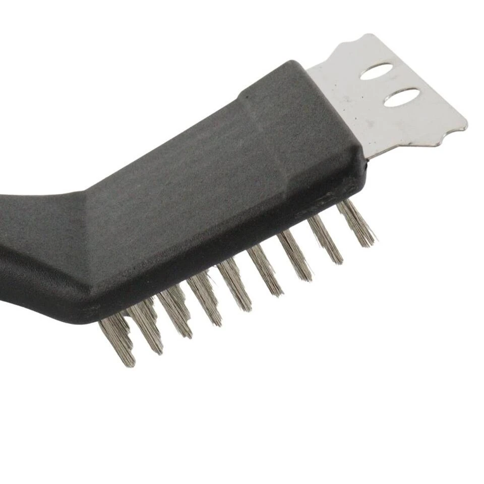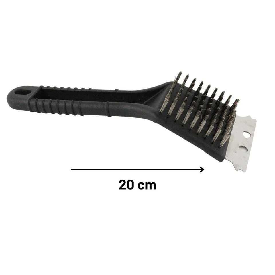 Met de Orange85 barbecue staalborstel hoef je nooit meer het schoonmaken van de barbecue uit te stellen. Met deze handige borstel heb je de barbecue binnen enkele minuten weer brandschoon. De borstel heeft stalen haren waardoor je gemakkelijk alle etensresten van de grillroosters schraapt. Deze borstel heeft een comfortabele greep en heeft aan de boven kant een hard deel waarmee je het beste schraapt.