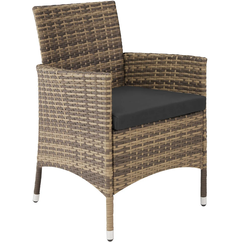 Deze wicker tuinset is heel veelzijdig en een echte blikvanger voor uw tuin, uw terras, wintertuin of woonkamer. Comfortabele stoelen en een elegante tafel nodigen uit om leuke uren met familie of vrienden door te brengen. De wicker set valt niet enkel door zijn elegante look in de smaak maar ook door zijn lange levensduur. Het tafeloppervlak met de 2 donkere glazen elementen oogt heel sierlijk en valt heel gemakkelijk te reinigen. De zeer comfortabele, beige zitkussens van polyester zijn qua kleur uitstekend op de set afgestemd en uitgerust met een ritssluiting aan de achterkant zodat de hoezen gemakkelijk gereinigd kan worden. Om de vullingen tegen het binnendringen van vocht te beschermen, is het oppervlak geïmpregneerd. Zo parelen vuil- en waterdruppels er gewoon af. Er wordt ook een beschermhoes meegeleverd.