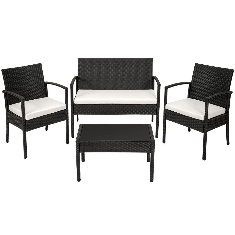Het gebruikte materiaal wicker is speciaal ontwikkeld voor tuinmeubelen. Wicker is de verzamelnaam voor een vervaardigde weven materiaal van polyethyleen, dat een industrieel geproduceerd alternatief is voor natuurlijke rotan. De zitkussens van de mooie set Sparta zijn optisch perfect aangepast aan het donkere, elegant design van het meubilair en is met een dikte van ongeveer 5,5 cm gegarandeerd van hoog zitcomfort. Ze zijn gemaakt van een waterafstotend PU materiaal dat gemakkelijk schoon te maken is.