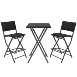 VidaXL 3-delige Bistroset Inklapbaar Staal Poly Rattan Zwart