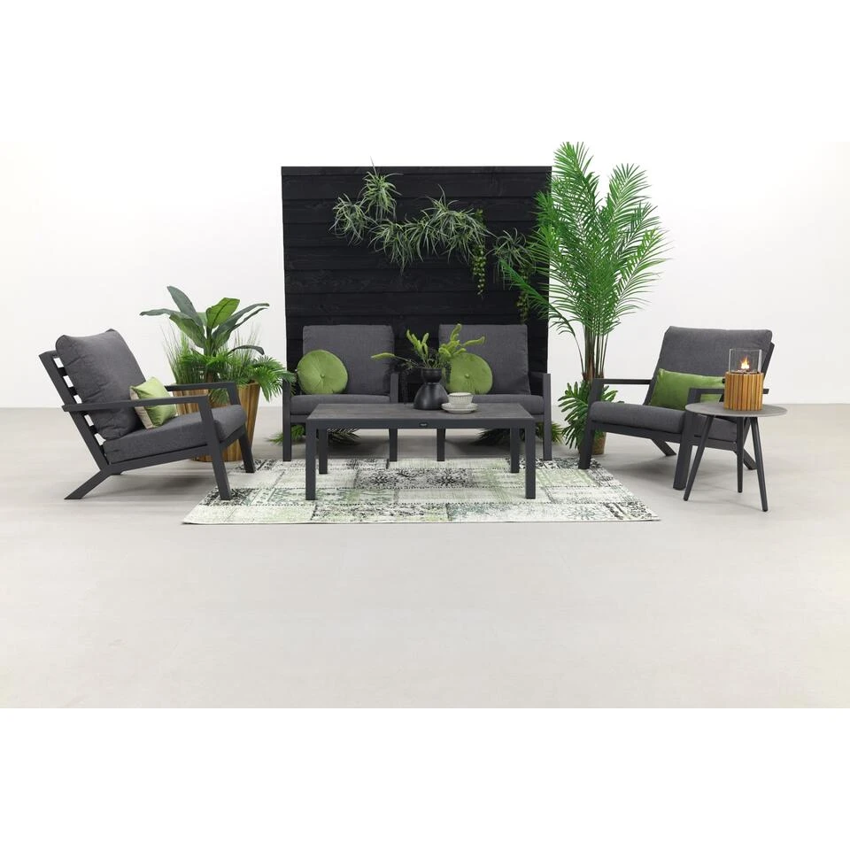 Het frame is gemaakt van aluminium. Hier is bewust voor gekozen. Aluminium is namelijk licht van gewicht, stevig en het materiaal kan niet gaan roesten. Dit maakt dan ook dat de Atlanta loungeset erg onderhoudsvriendelijk is. Schoonmaken met een sopje en water is meer als voldoende. De kussens zijn antraciet van kleur en voorzien van een heerlijk stevige vulling. Ook zijn de kussens voorzien van een ritssluiting, dit zorgt ervoor dat indien ze vuil zijn geworden ze uitgewassen kunnen worden. Zo blijven ze mooi.Â