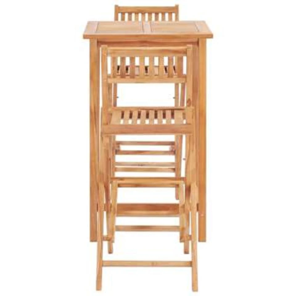 Deze bartafel heeft strakke lijnen en een eenvoudig houten blad, waardoor je je gasten comfortabel kan ontvangen. De barkrukken zijn inklapbaar voor eenvoudig opbergen en verplaatsen. De levering bevat 1 bartafel en 2 barstoelen.