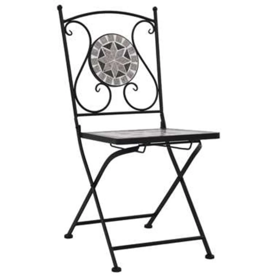 - Materiaal: gepoedercoat ijzeren frame en keramische tegels op zittingen en tafelblad