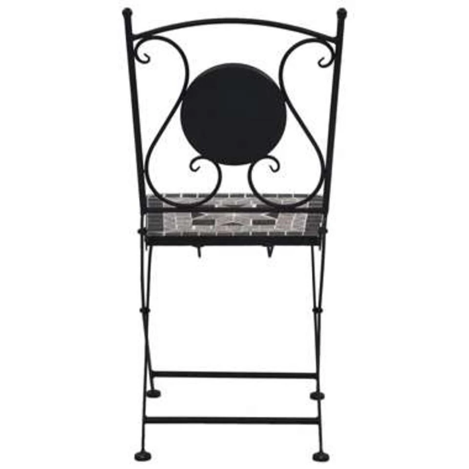 Dankzij het sterke, gepoedercoat ijzeren frame en de keramische tegels zijn onze tafel en stoelen stevig, duurzaam en gemakkelijk schoon te maken.