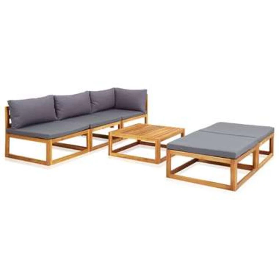 Het bankstel heeft een massief acaciahouten frame waardoor de set sterk, stevig en duurzaam is; de olieafwerking maakt de set geschikt voor gebruik buiten. De afneembare zit- en rugkussens zijn dik gevoerd, voor een geweldig zitcomfort. Een salontafel met een uniek gelat ontwerp is ook inbegrepen. Bovendien vallen alle onderdelen op dankzij het modulaire ontwerp waardoor ze naar wens geplaatst kunnen worden.